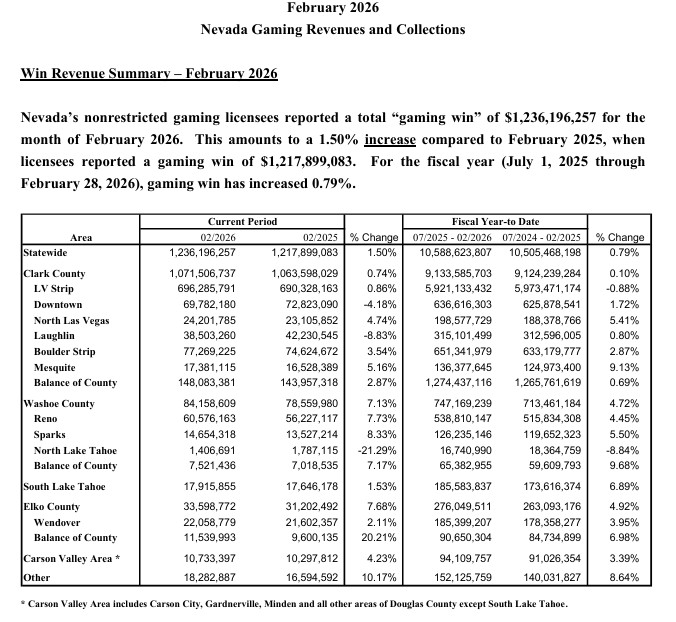 Laughlin brought in about $3.72 million less in gaming revenue than in February of last year.