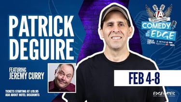Patrick DeGuire started performing stand-up after losing a significant amount of vision and discovering laughter to be self-therapeutic. Soon after getting started, he won the Improv/ Harrah’s National Comedy Club Talent Search, which led to numerous appearances on national television, including Comedy Central, ‘Comics Unleashed’ on CBS, and ‘Que Locos’ on Galavision. Patrick has been heard on such national syndicated radio shows as ‘The Bob and Tom Show’ and NPR. Patrick has performed/ toured with such comedians as Tom Segura, Theo Von, Gary Owen, Tommy Davidson, Gabriel Iglesias, George Lopez and Paul Rodriguez. Besides headlining at the top comedy clubs throughout the United States, he has also performed for the U.S. troops overseas in Australia, the Bahamas, Bahrain, the Caribbean, Cuba (Guantanamo Bay), Diego Garcia, Djibouti, Greenland, Guam, Honduras, Iraq, Japan, Jordan, Kuwait, Qatar, Saudi Arabia, Singapore, South Korea and UAE.