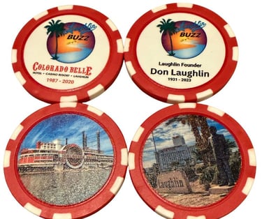 New, Limited Edition Laughlin Buzz Group Poker Chips. Each set includes 1 Colorado Belle and 1 Riverside/Don Laughlin keepsake Poker Chip. Get one before supplies run out.