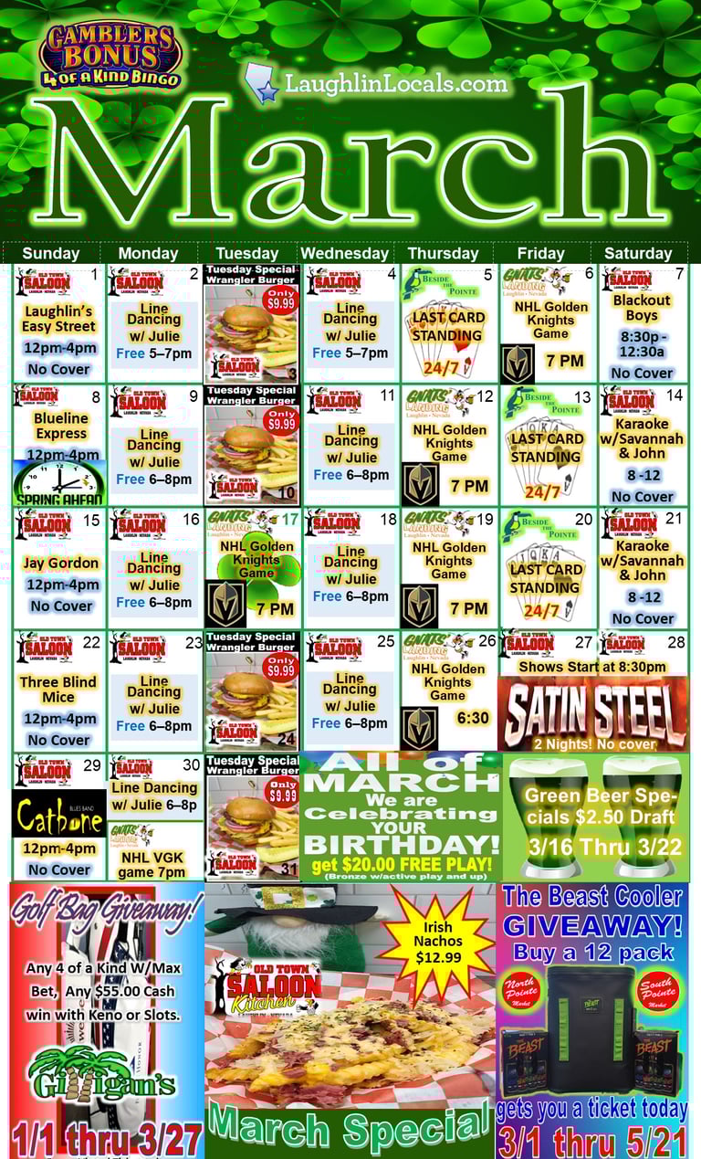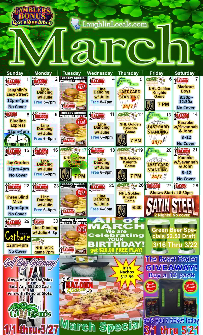 A weekly roundup of the music & entertainment in Laughlin and the Tri-State area is posted on the Laughlin Buzz Facebook group each week by Patrick. E., visit the link below to view the listings for February 23rd - March 1st